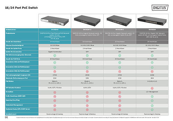 16/24 Port PoE Switch